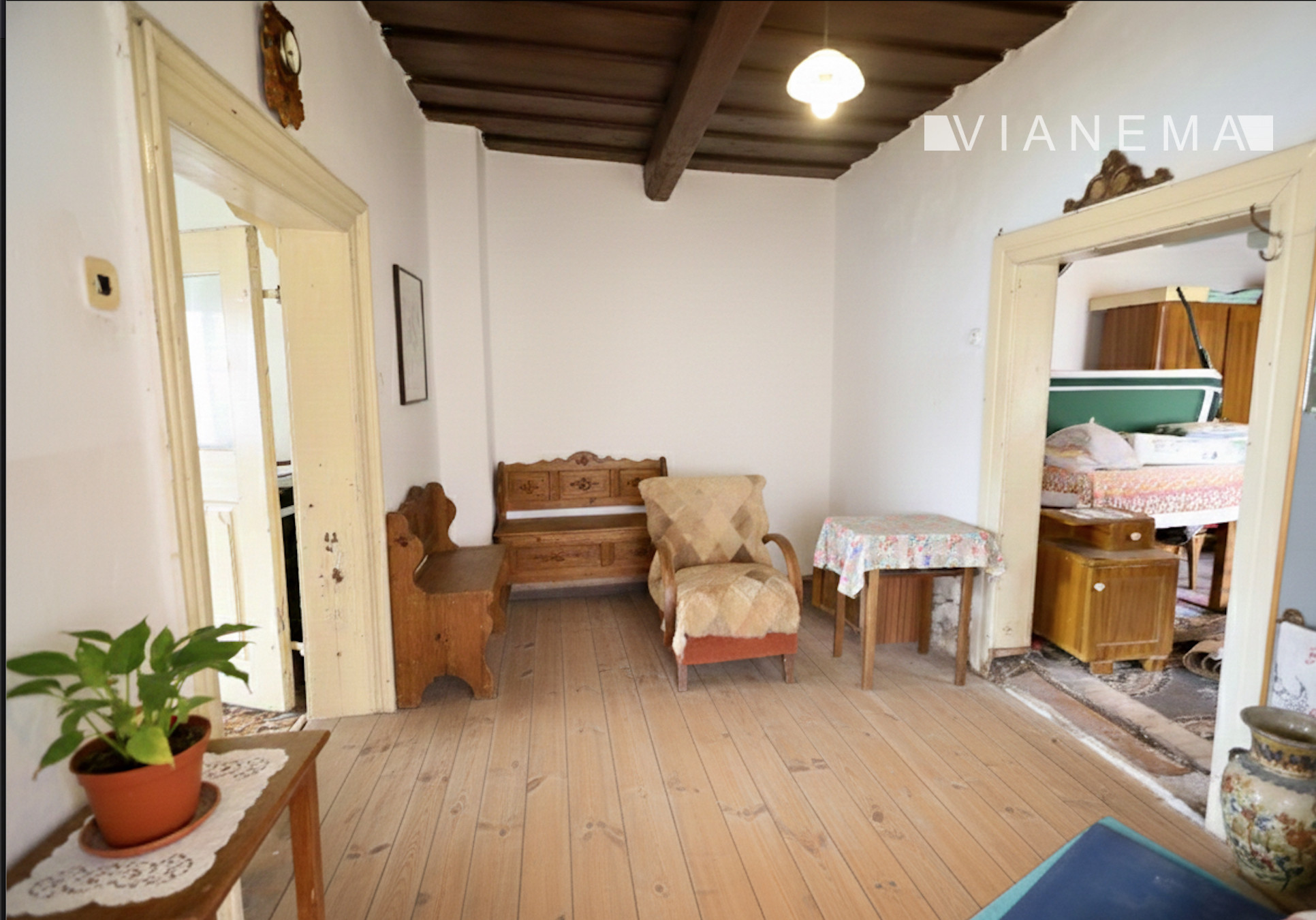 Pozostáva z verandy, chodby, dvoch izieb, kuchyne a kúpeľne.