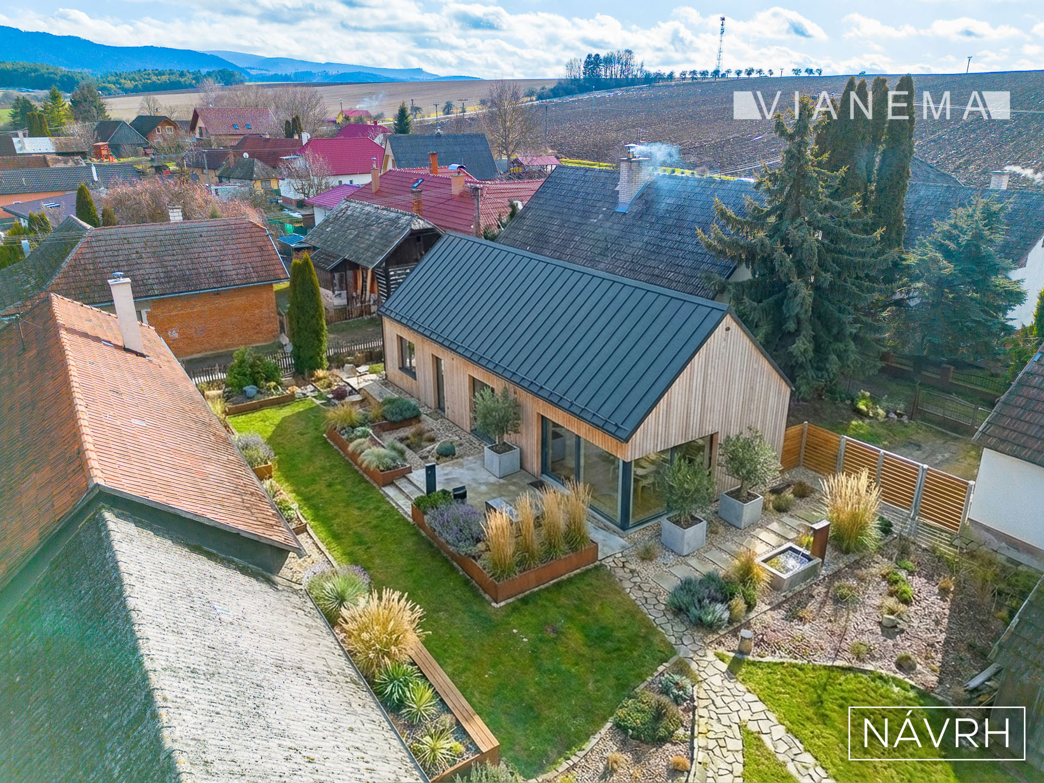 Prístavby tvorí: drevenou stodola s hospodárskou časťou a dieľňou s možnosťou prestavby na ateliéry alebo exkluzívne wellness, až po odstránenie a zväčšenie záhradnej plochy.
