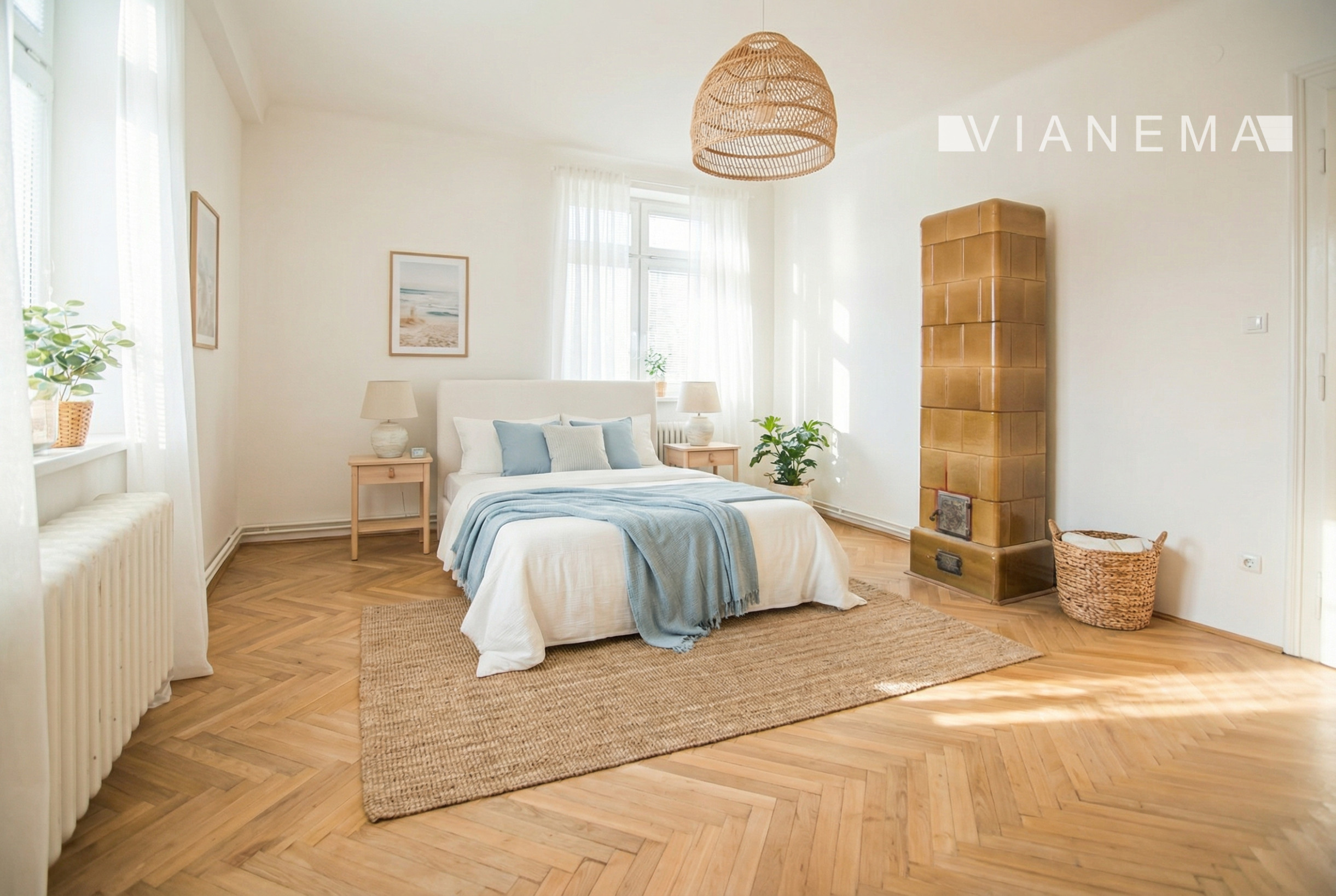 V byte sa zachovali autentické staromestské prvky: vysoké stropy, pôvodné dvere, dubové parkety, pôvodné kachle a vstavané skrine. Okná sú vymenené za plastové, čo zlepšuje tepelný komfort. K bytu patrí aj pivničná kobka.