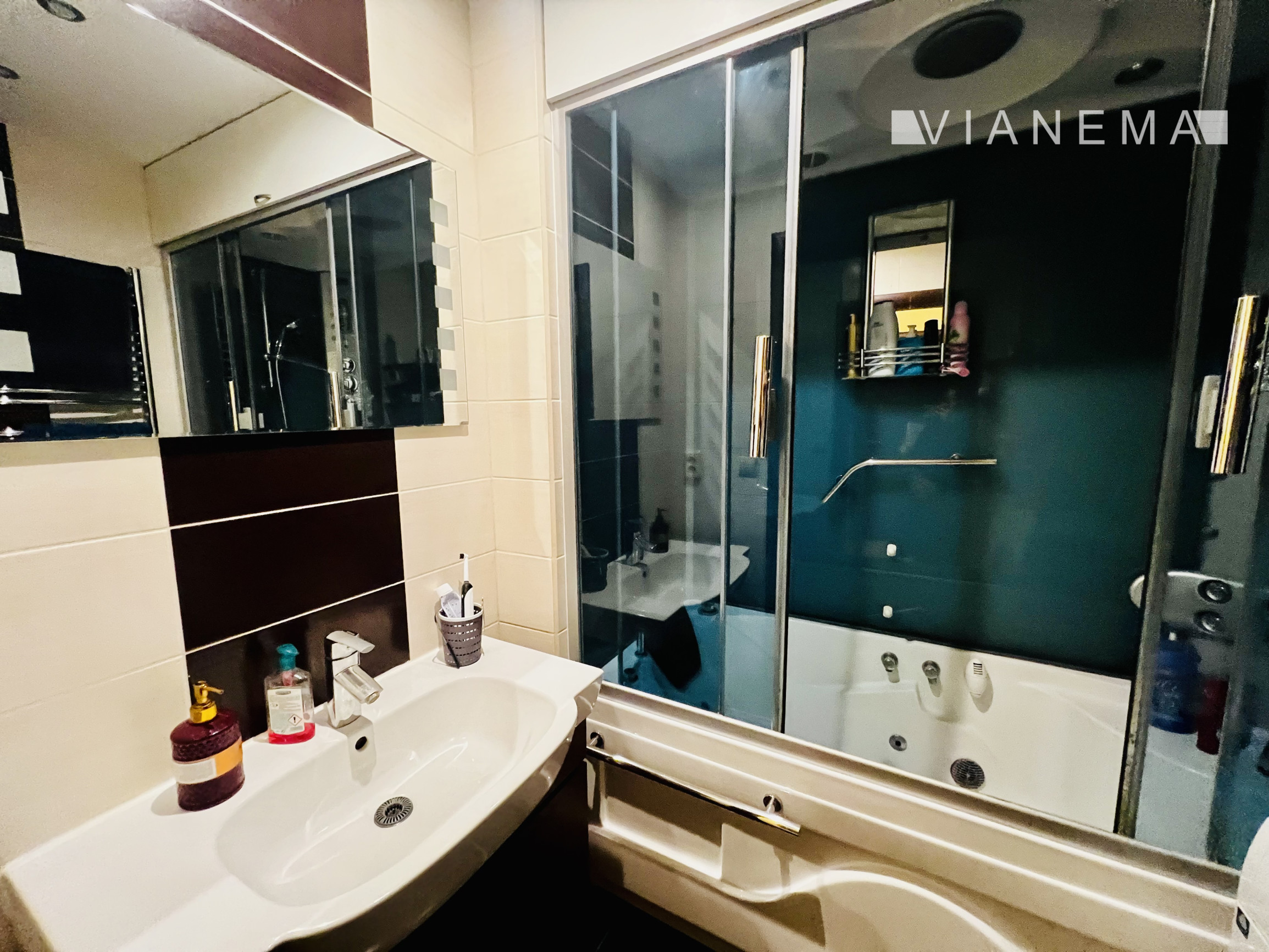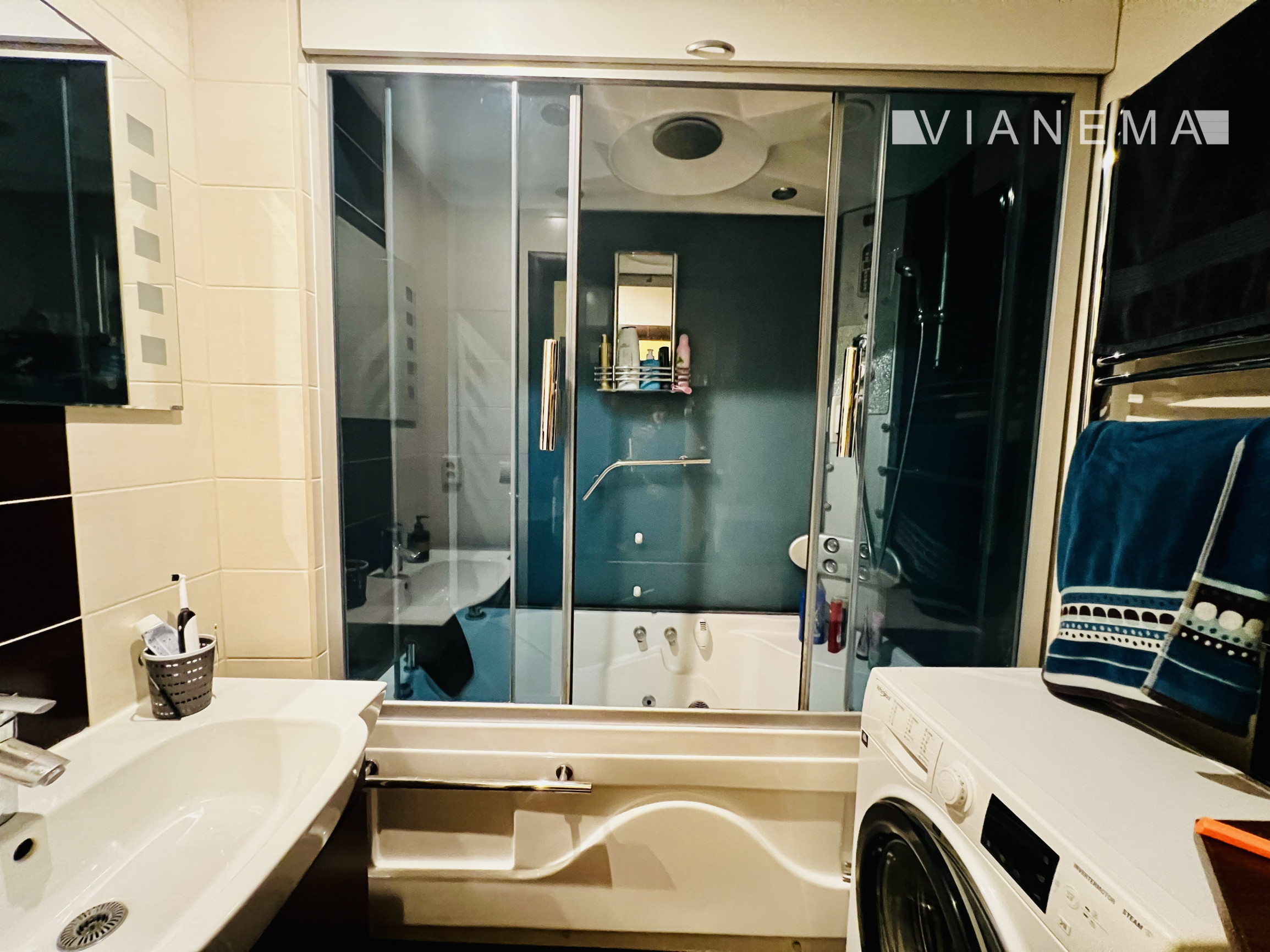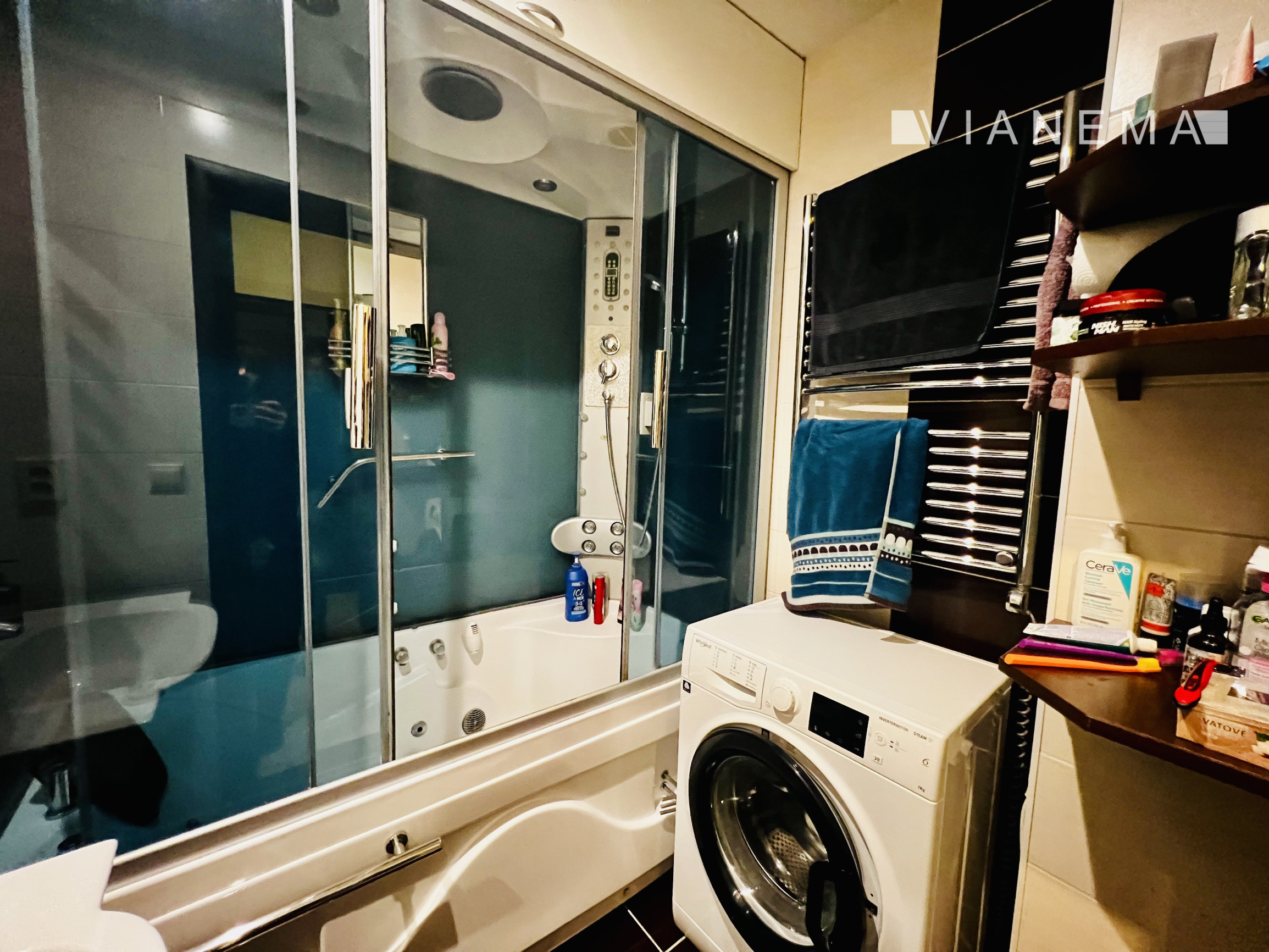 Interiér tohto priestranného bytu ponúka moderný a elegantný dizajn, ktorý bol dôkladne zrekonštruovaný v roku 2010. Použitie béžovo hnedých farieb dodáva priestoru teplý a útulný pocit, zatiaľ čo orientácia na juhovýchod zabezpečuje dostatok prirodzeného svetla po celý deň. V izbách nájdete laminátové plávajúce podlahy s imitáciou dreva, ktoré dokonale ladia s dlažbou v hale a kuchyni. Kuchyňa je samostatná, plne vybavená, s možnosťou prepojenia s obývacou izbou, čo poskytuje flexibilitu pre budúce úpravy podľa vašich potrieb. Kúpeľňa je vybavená boxom, ktorý zahŕňa vírivkovú vaňu aj sprchový masážny kút. Byt sa predáva aj s nábytkom, ako ho vidíte na fotkách.