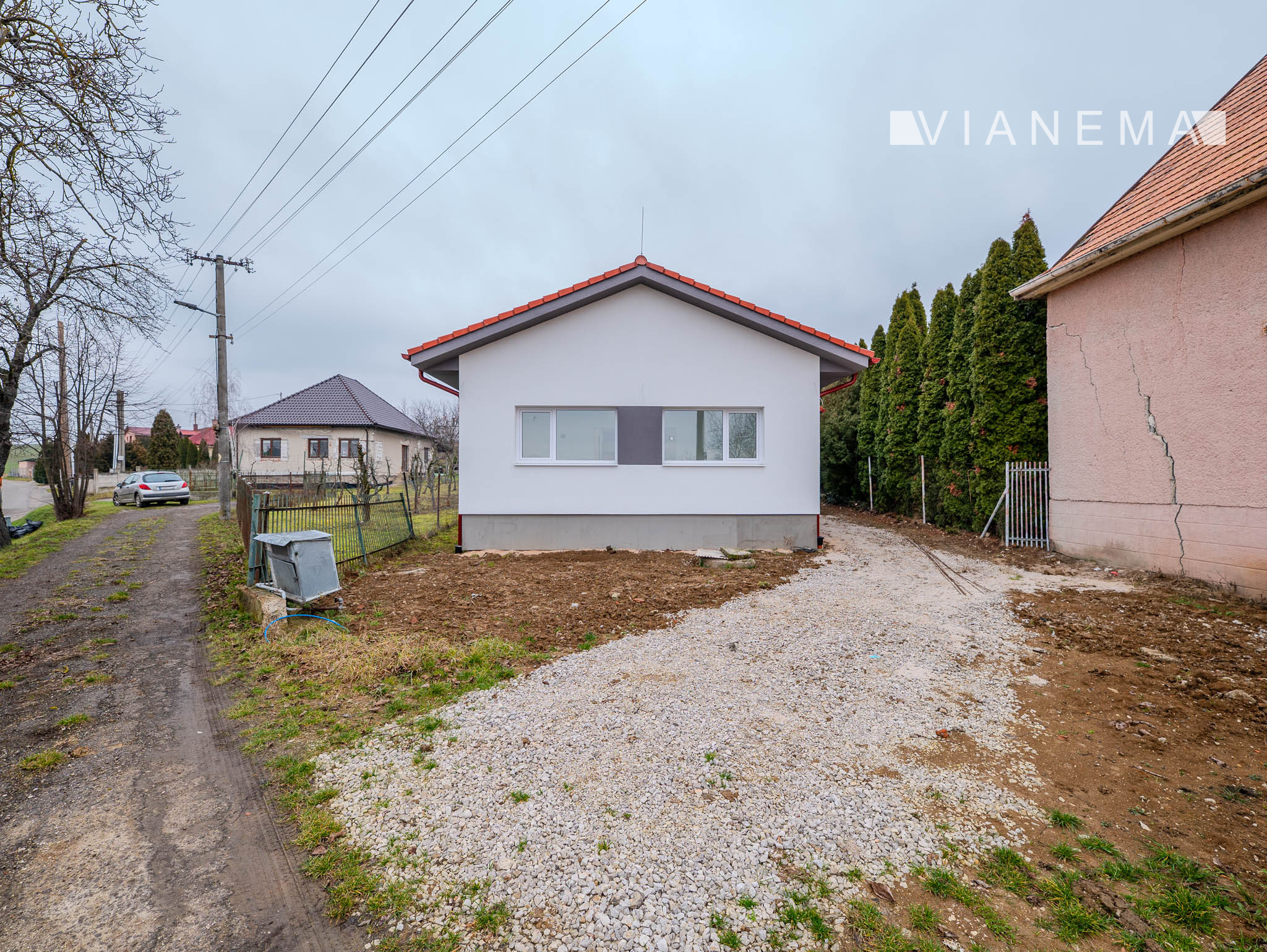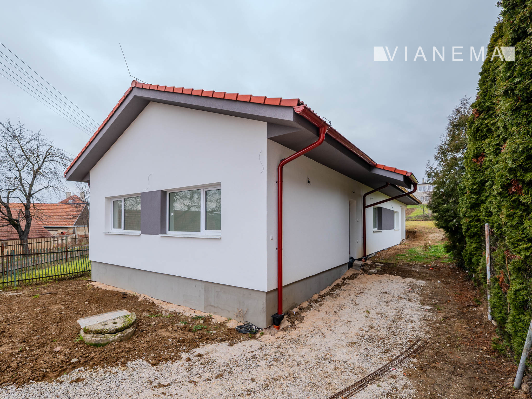 - plynová prípojka na hranici pozemku (nie je dovedená do domu)