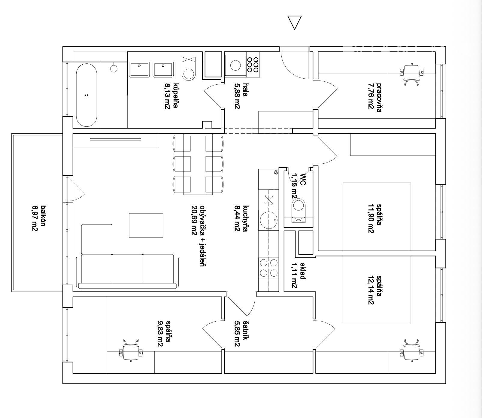 Výmera: 92 m² + 7 m² balkón + pivnica