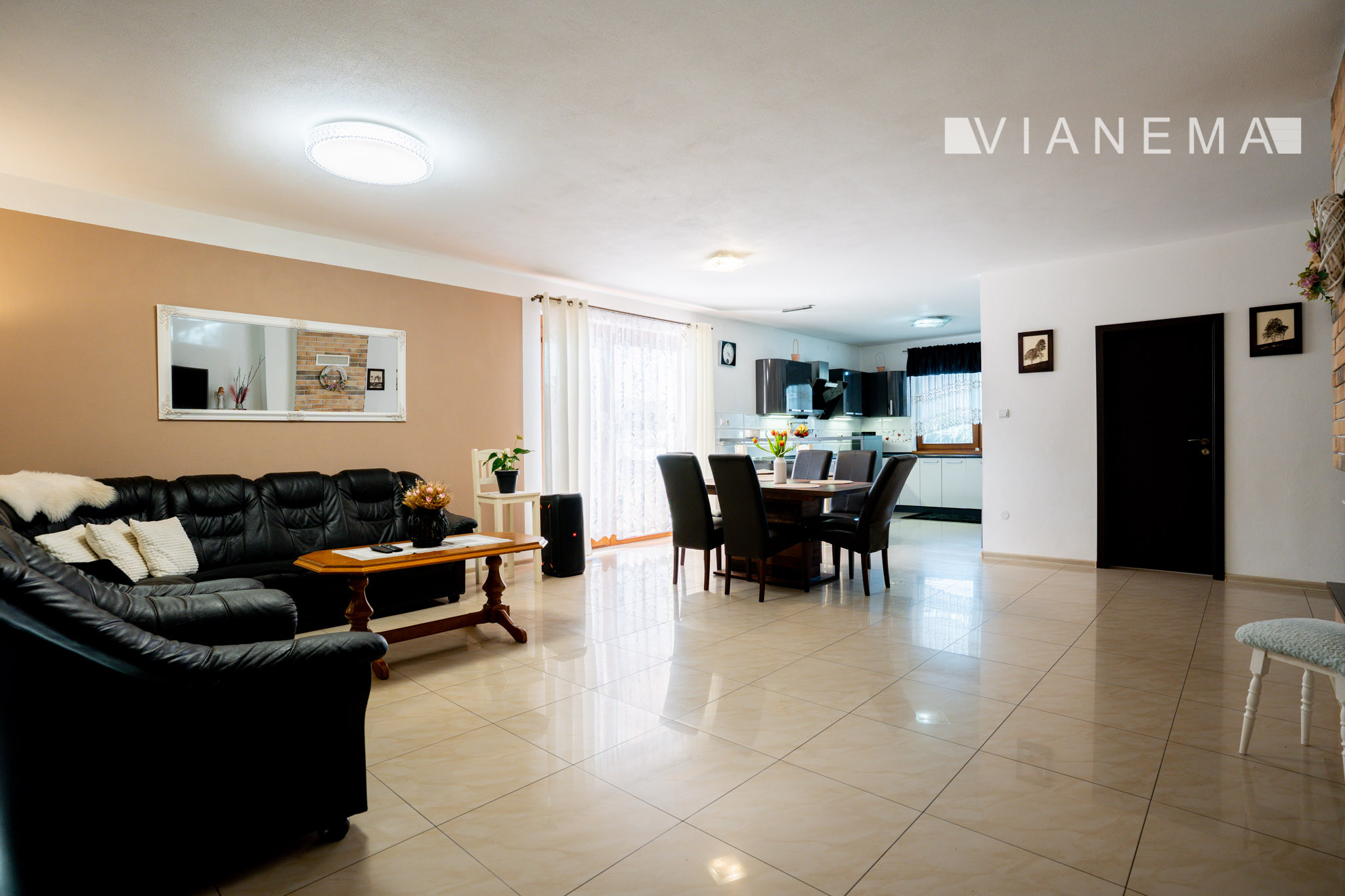 Dominantou prízemia je priestranná obývacia miestnosť prepojená s kuchyňou, ktorá vytvára prirodzené centrum rodinného života – ideálne miesto pre spoločné chvíle, rodinné stretnutia či relax pri krbe. Dom ponúka veľké vzdušné a svetlé izby, ktoré poskytujú dostatok komfortu a súkromia pre každého člena rodiny. Kvalita materiálov, energetická efektivita, zaručuje dlhodobú hodnotu a je vhodnou investičnou voľbou.