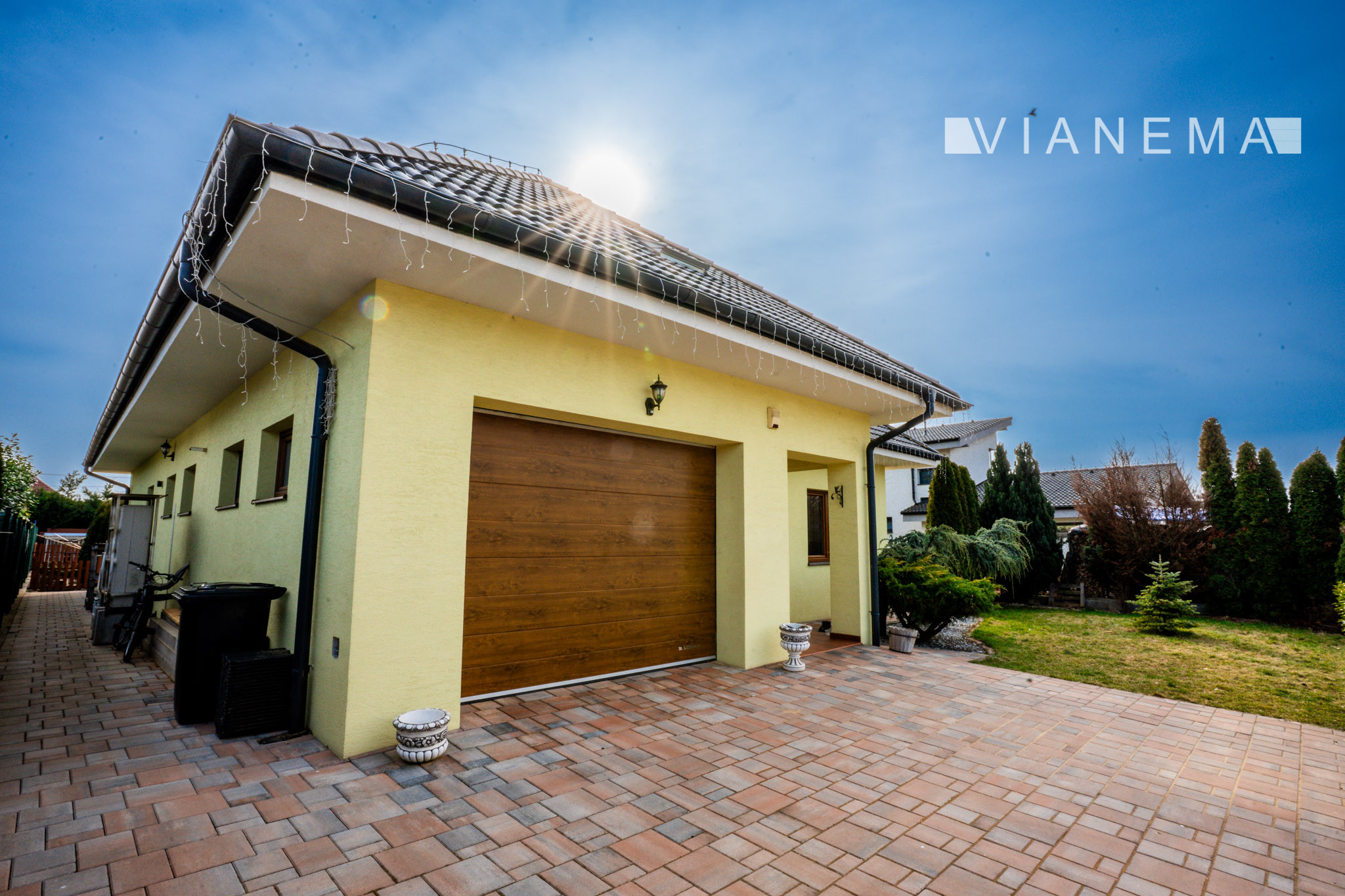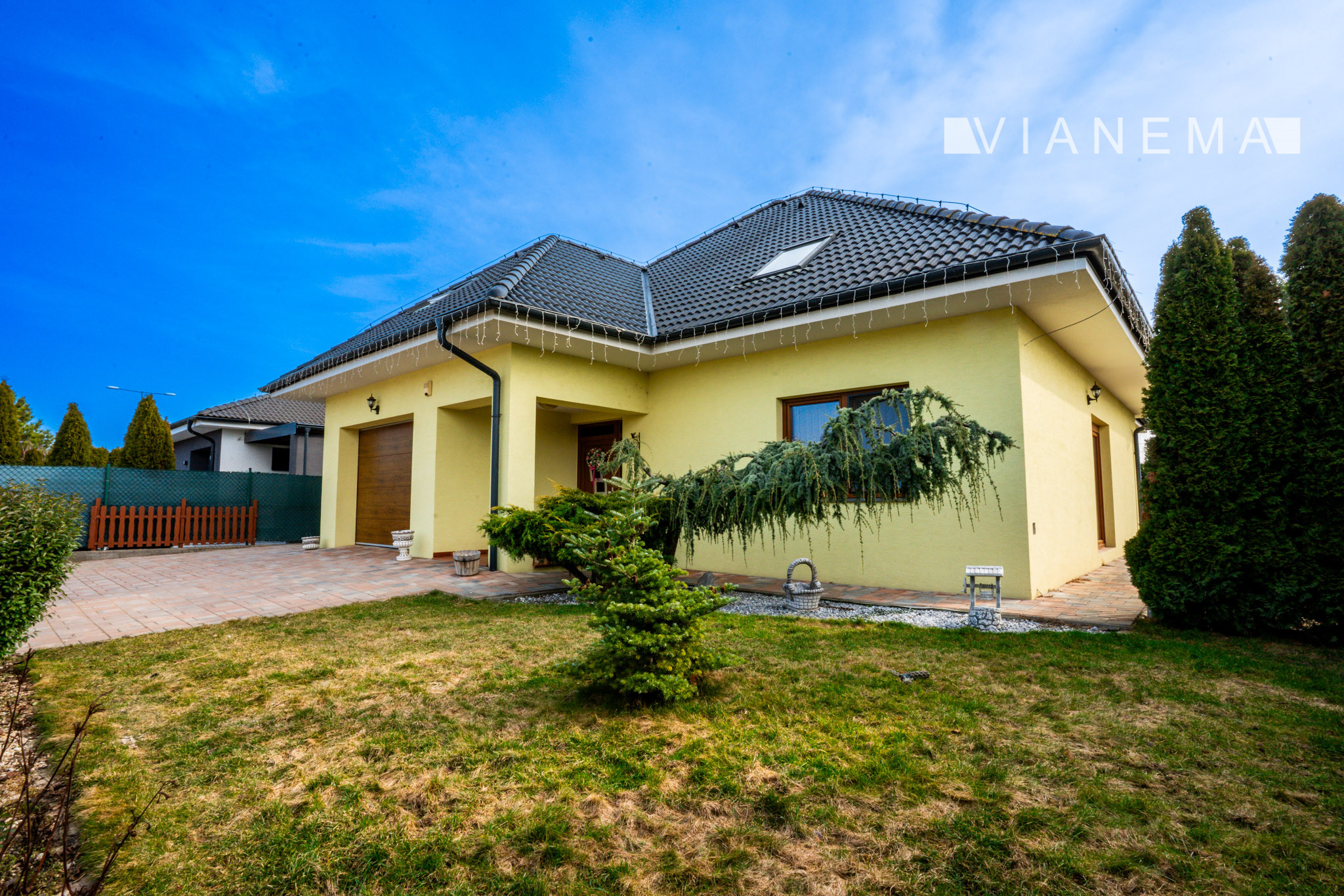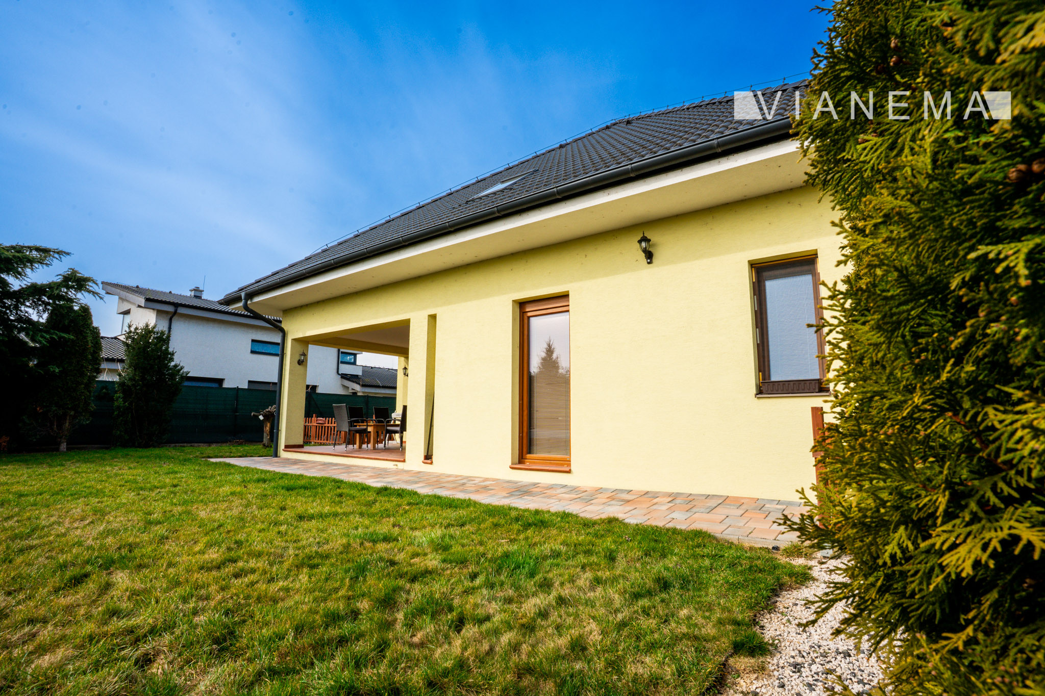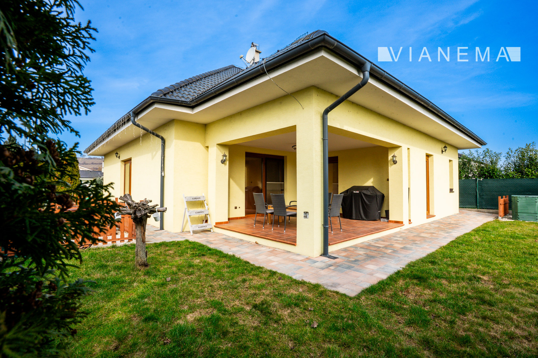 Exteriér nehnuteľnosti je navrhnutý pre maximálny oddych a rodinnú pohodu. Nájdete tu krytú terasu, záhradný bazén a udržiavaný pozemok s automatickou závlahou. Súčasťou je aj voliéra so psom (v prípade záujmu).