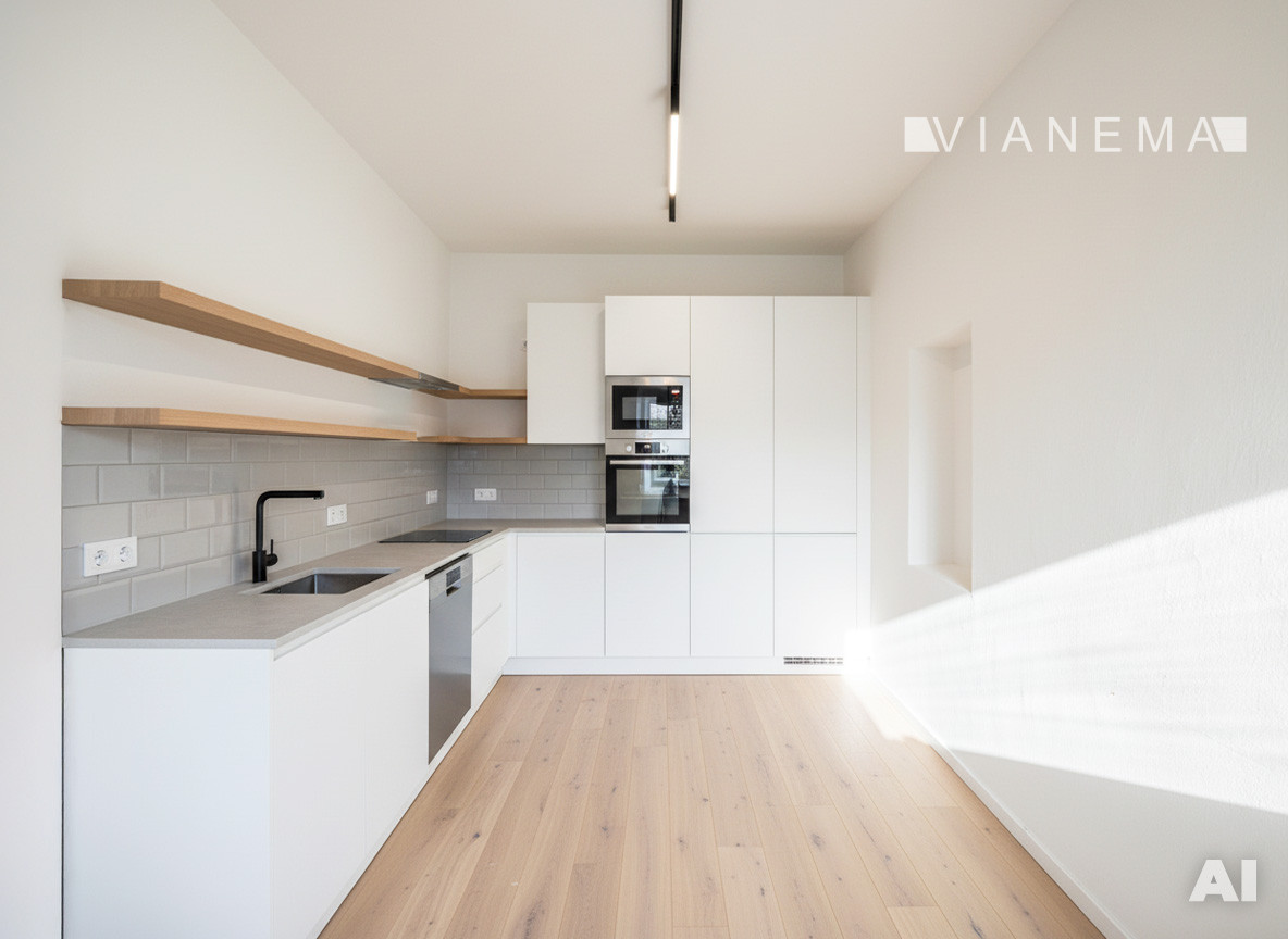 • Priestranná kuchyňa s oknom do záhrady