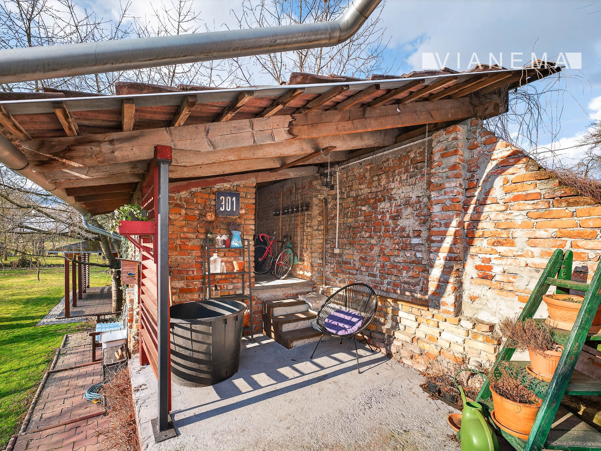 Nájdete tu okrasnú záhradu, ovocné stromy a pôvodný murovaný domček, ktorý je ideálnym miestom na letné posedenie.